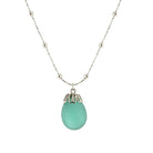 1928 Jewelry Frosted Glass Egg Pendant Beaded Chain Necklace 16" + 3" Extender