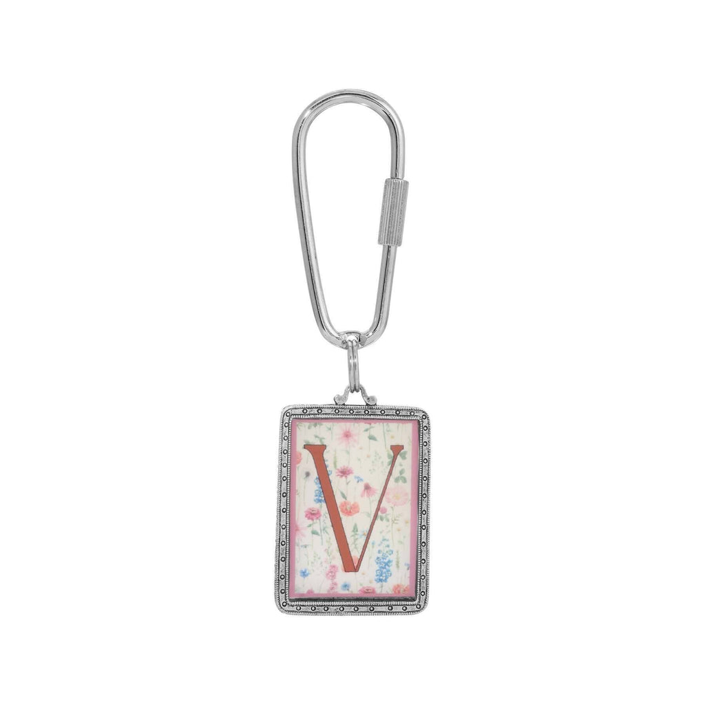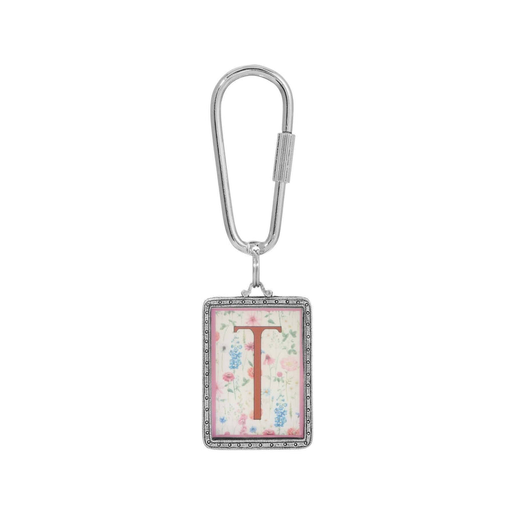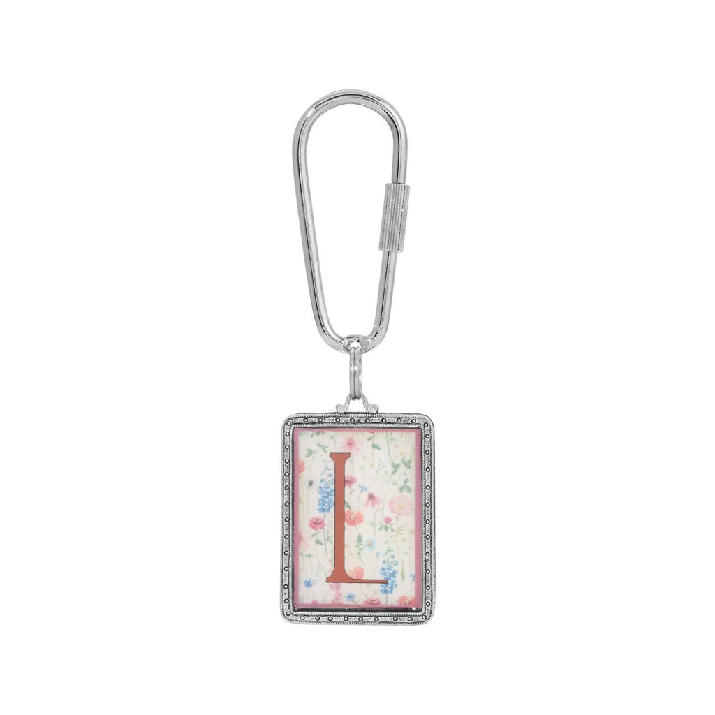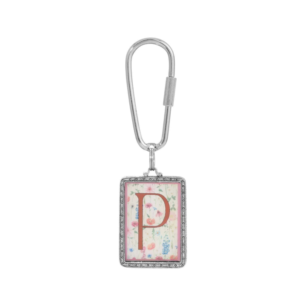 1928 Jewelry Pink Floral Motif Initial Carabiner Key Chain