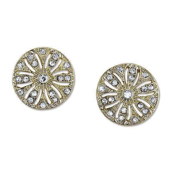 1928 Jewelry Round Disk Swirly Filigree Crystal Drop Earrings