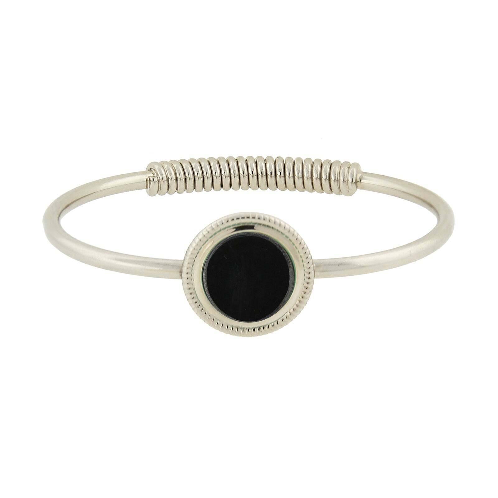 This spring cuff hinge bracelet showcases a beautiful round genuine semi-precious stone at its center, capturing the essence of nature's vibrant palette. The design seamlessly blends elegance and modernity, making it a versatile piece for any occasion. Its sophisticated hinge mechanism ensures a comfortable fit while maintaining a sleek and stylish look.