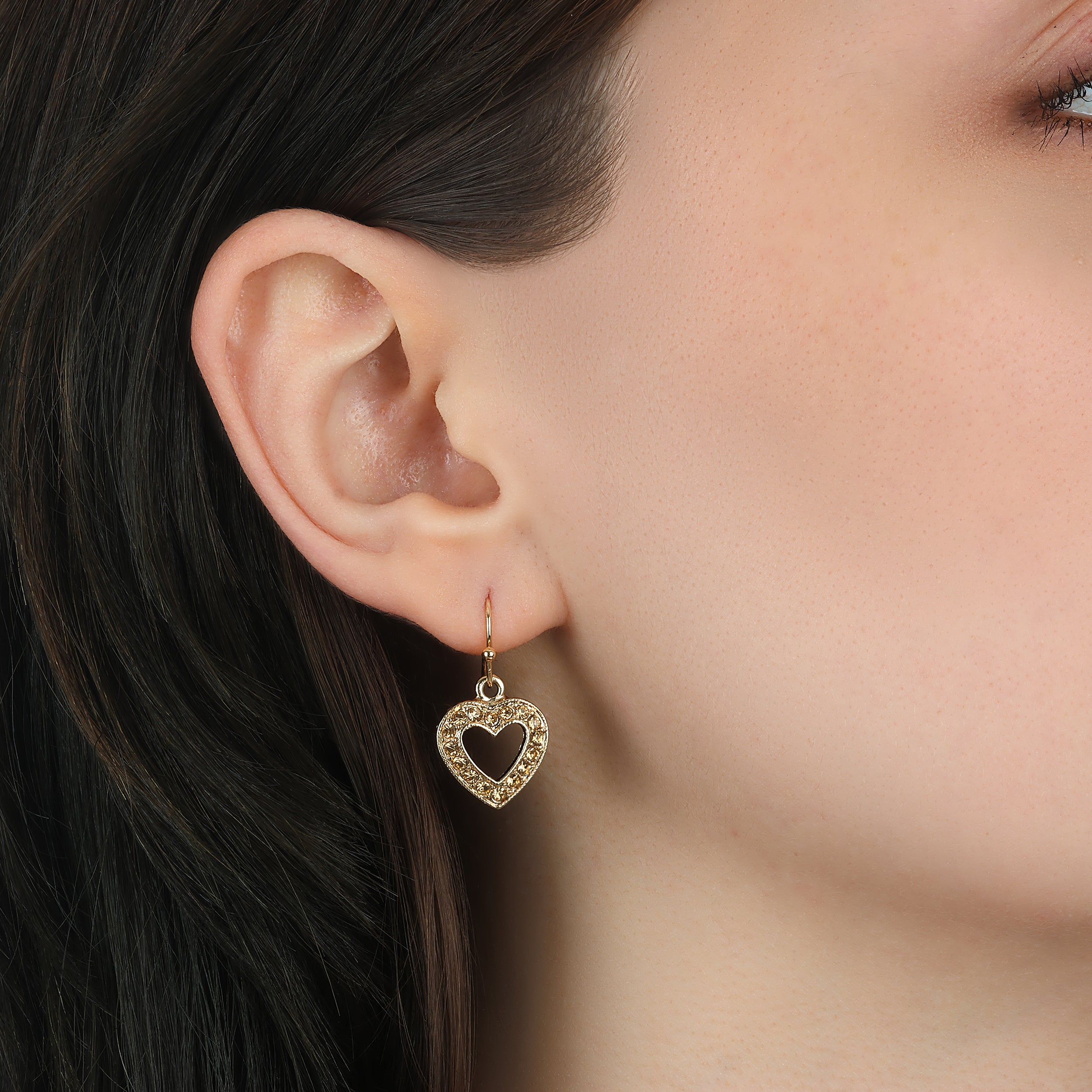 1928 Jewelry Topaz Crystal Open Heart Wire Drop Earrings