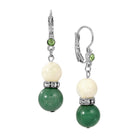 Soft green aventurine gemstones are paired with luminous white mother-of-pearl beads, creating a graceful contrast of color and texture. Silver-tone lever back settings feature a subtle green peridot crystal accent that adds a refined sparkle above the drop. The overall design feels polished and feminine, offering gentle movement and a naturally elegant look.