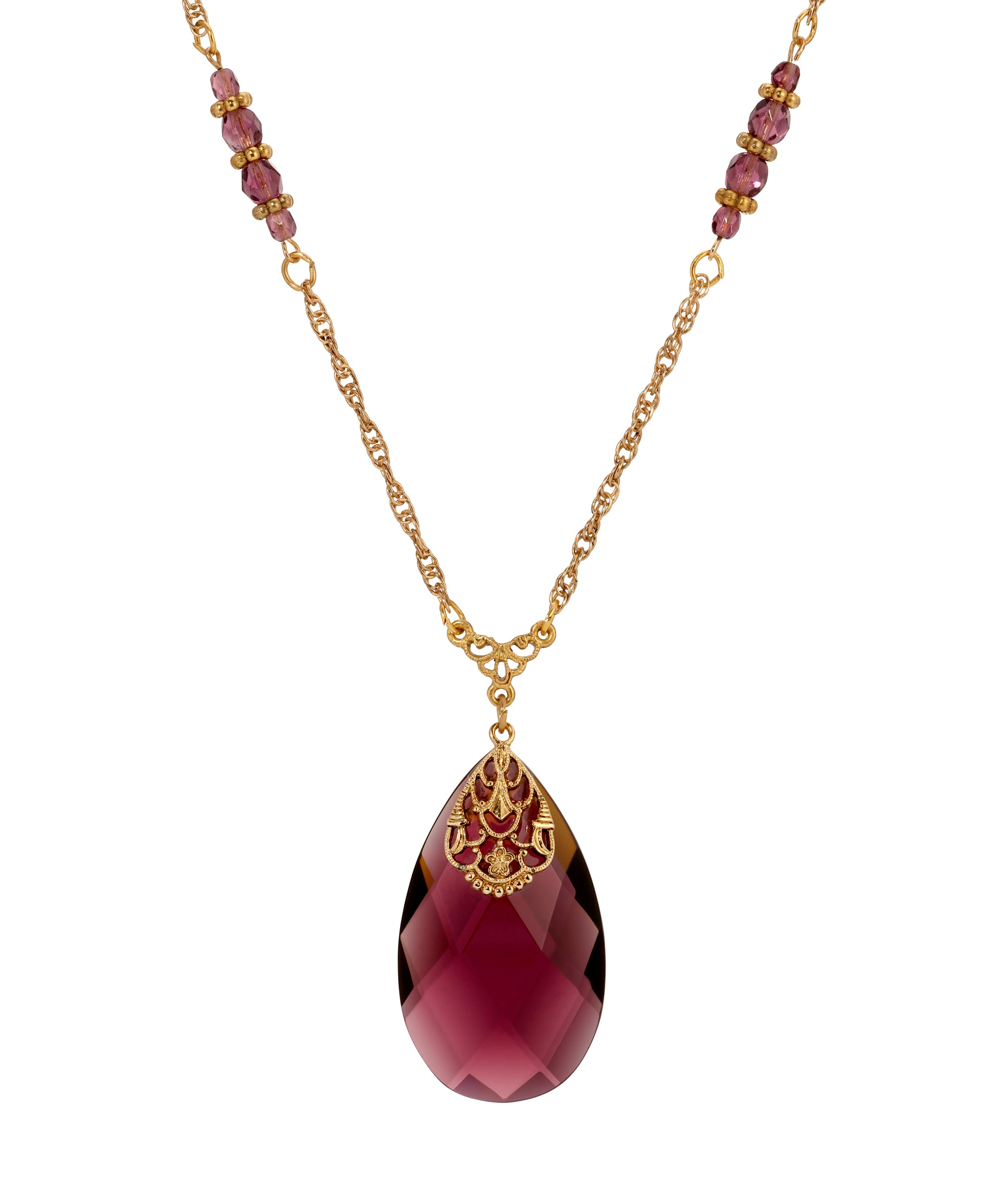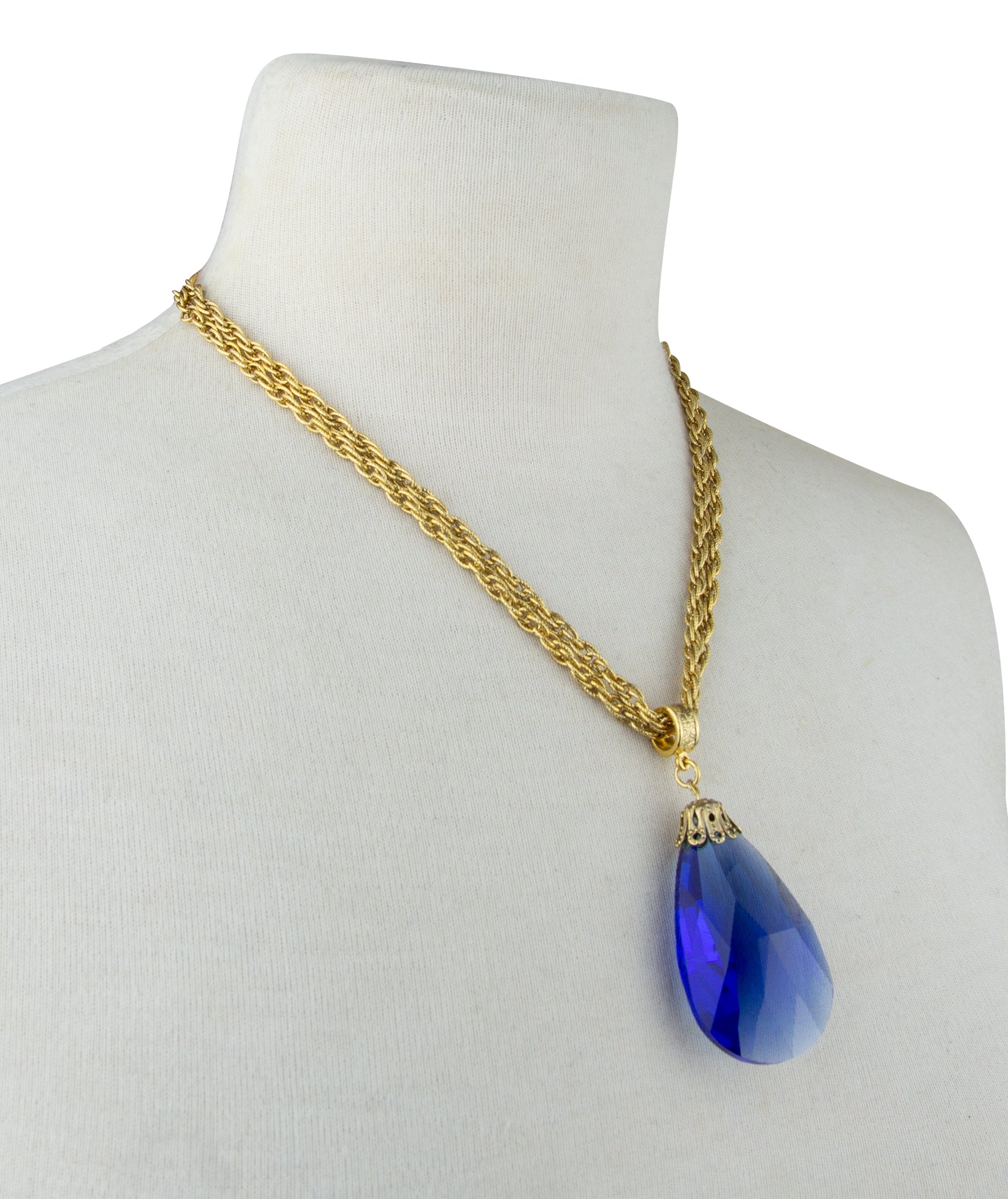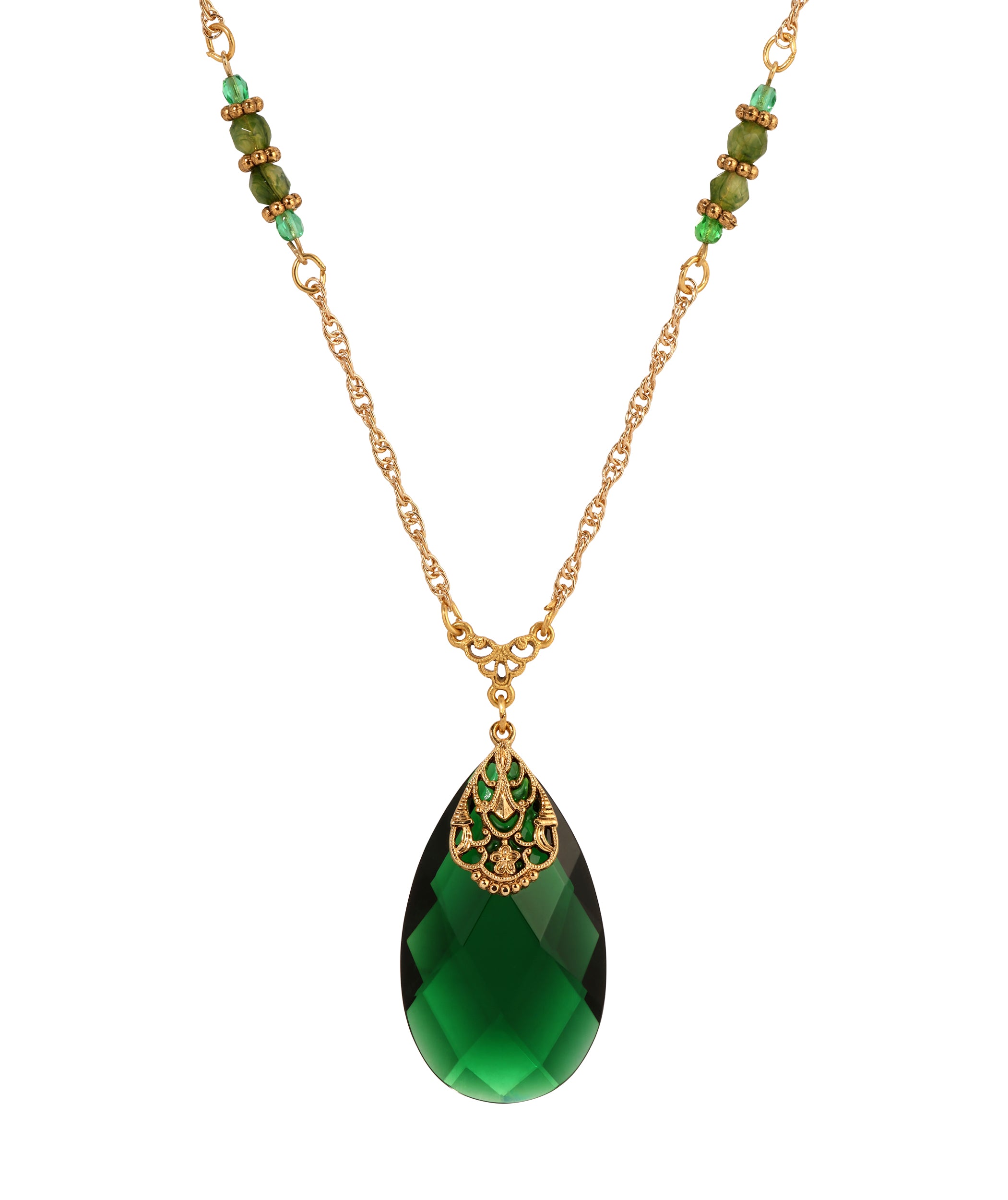1928 Jewelry Briolette Glass Stone Pendant Necklace 28"