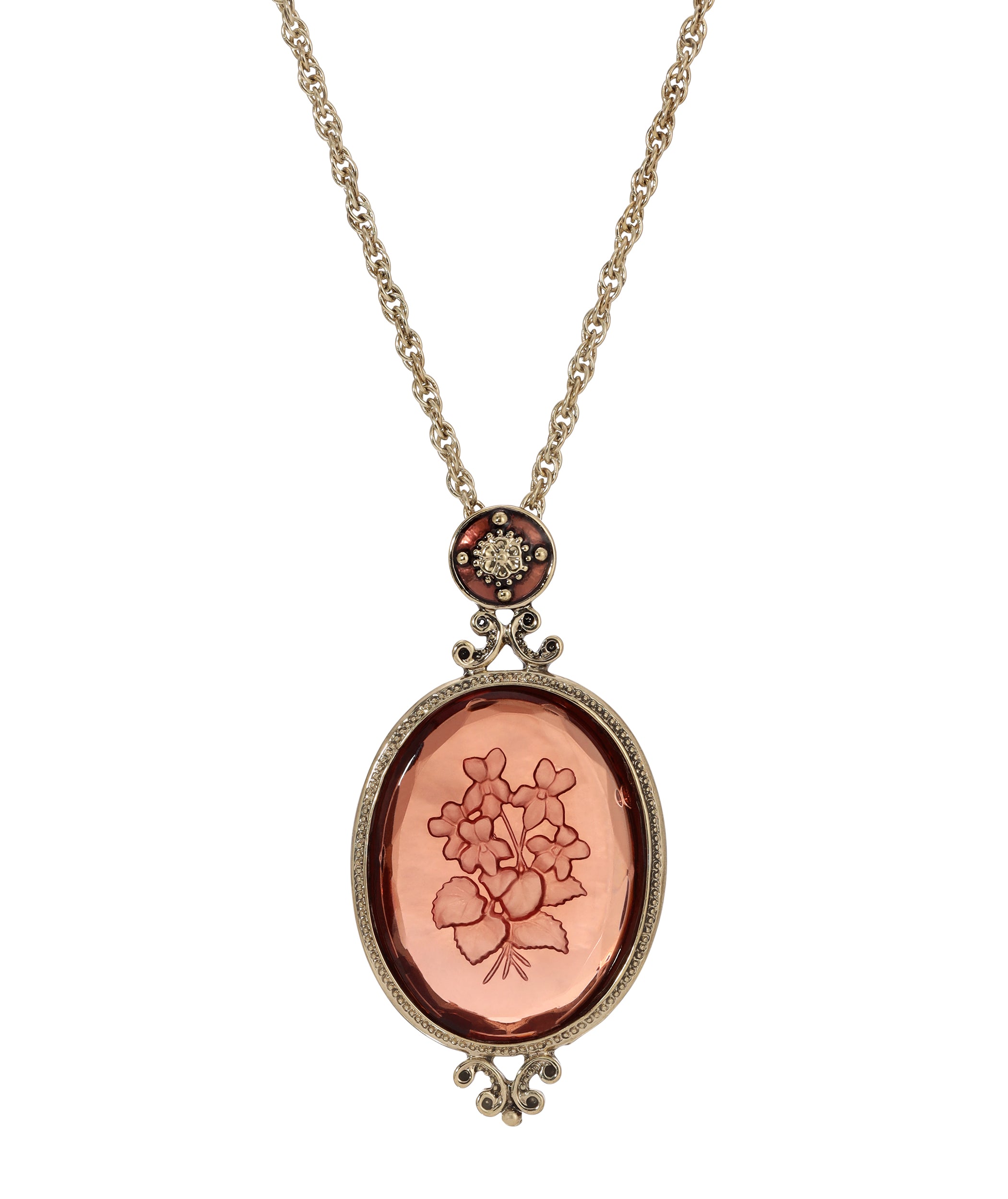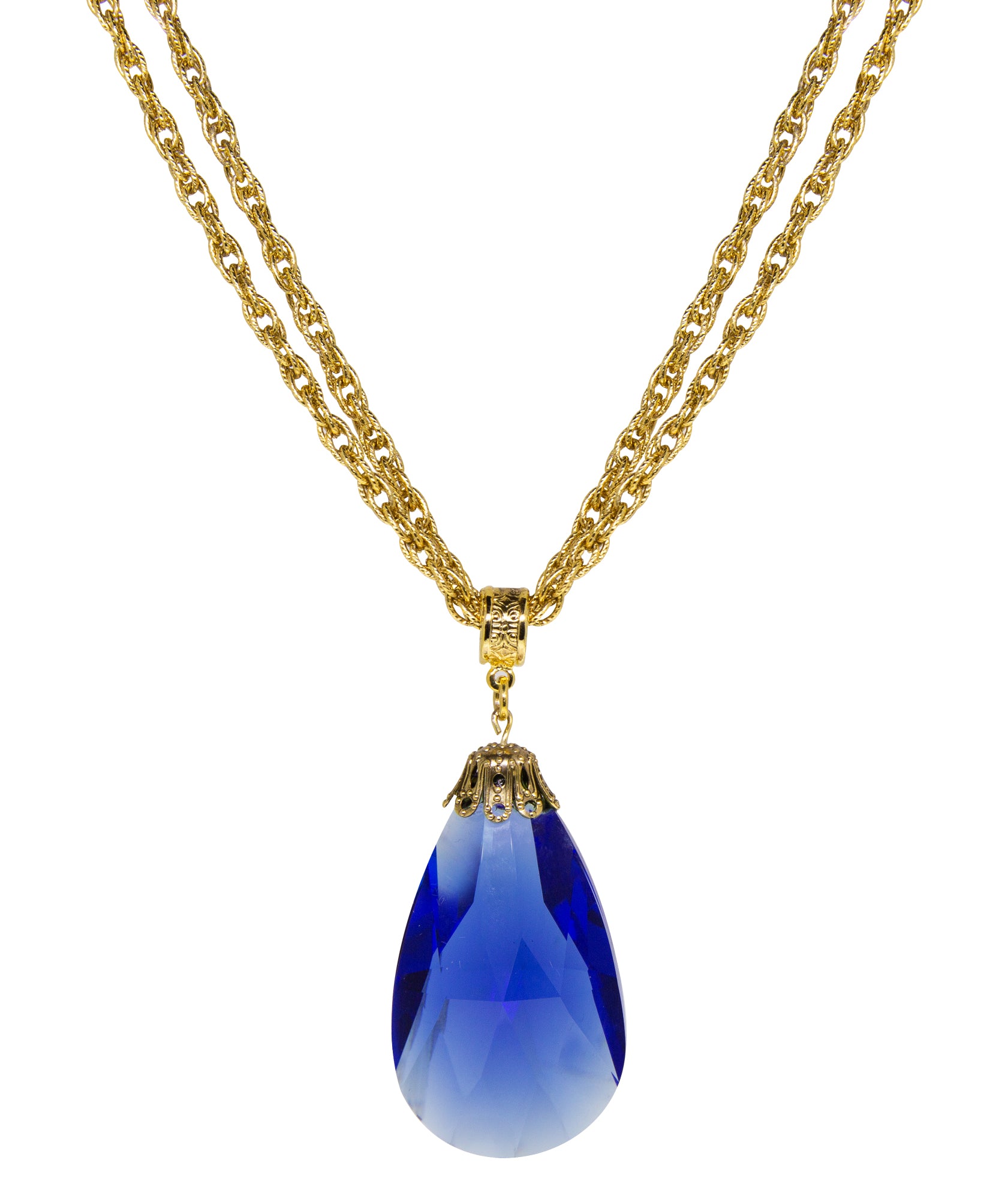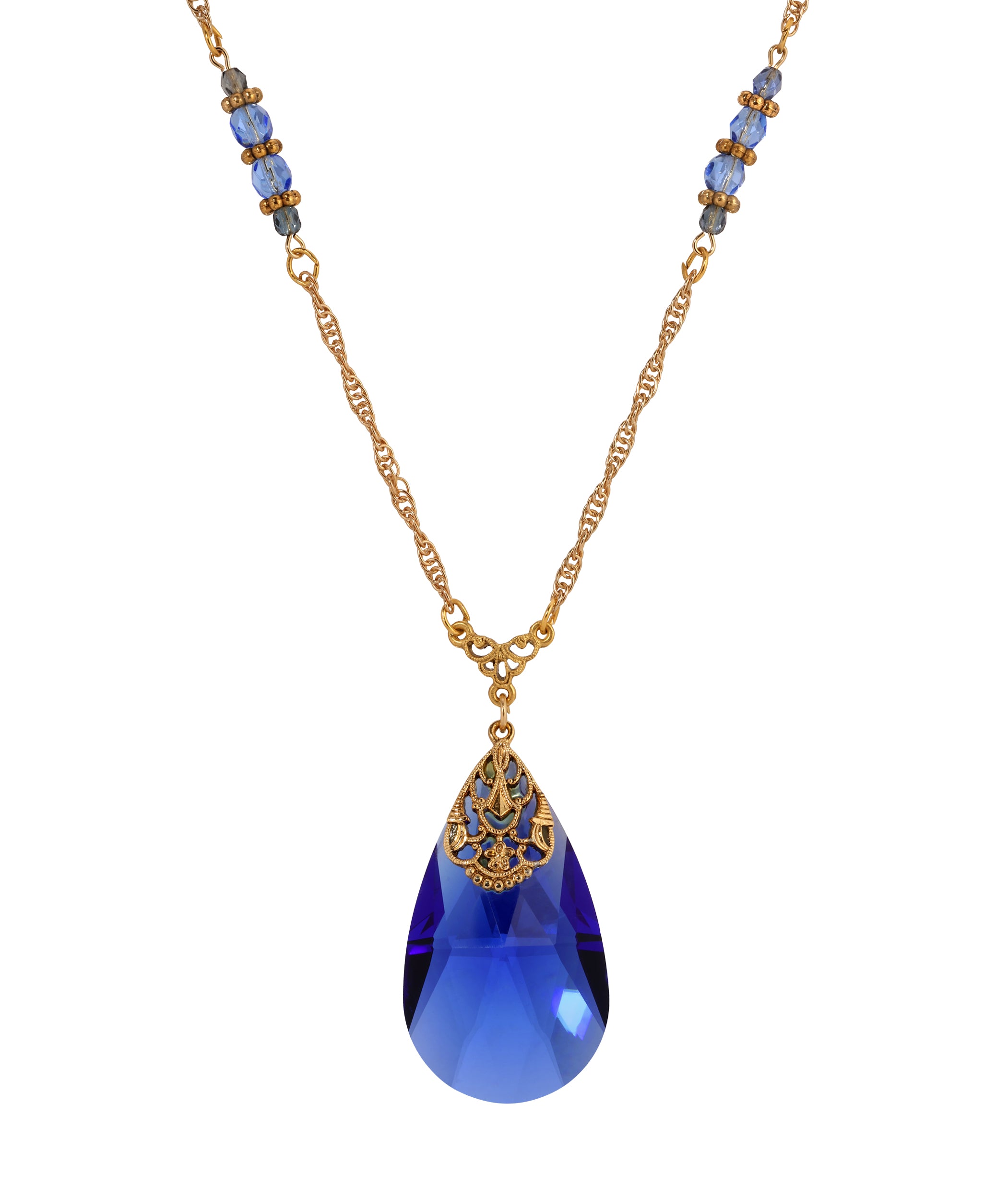 1928 Jewelry Briolette Glass Stone Pendant Necklace 28"
