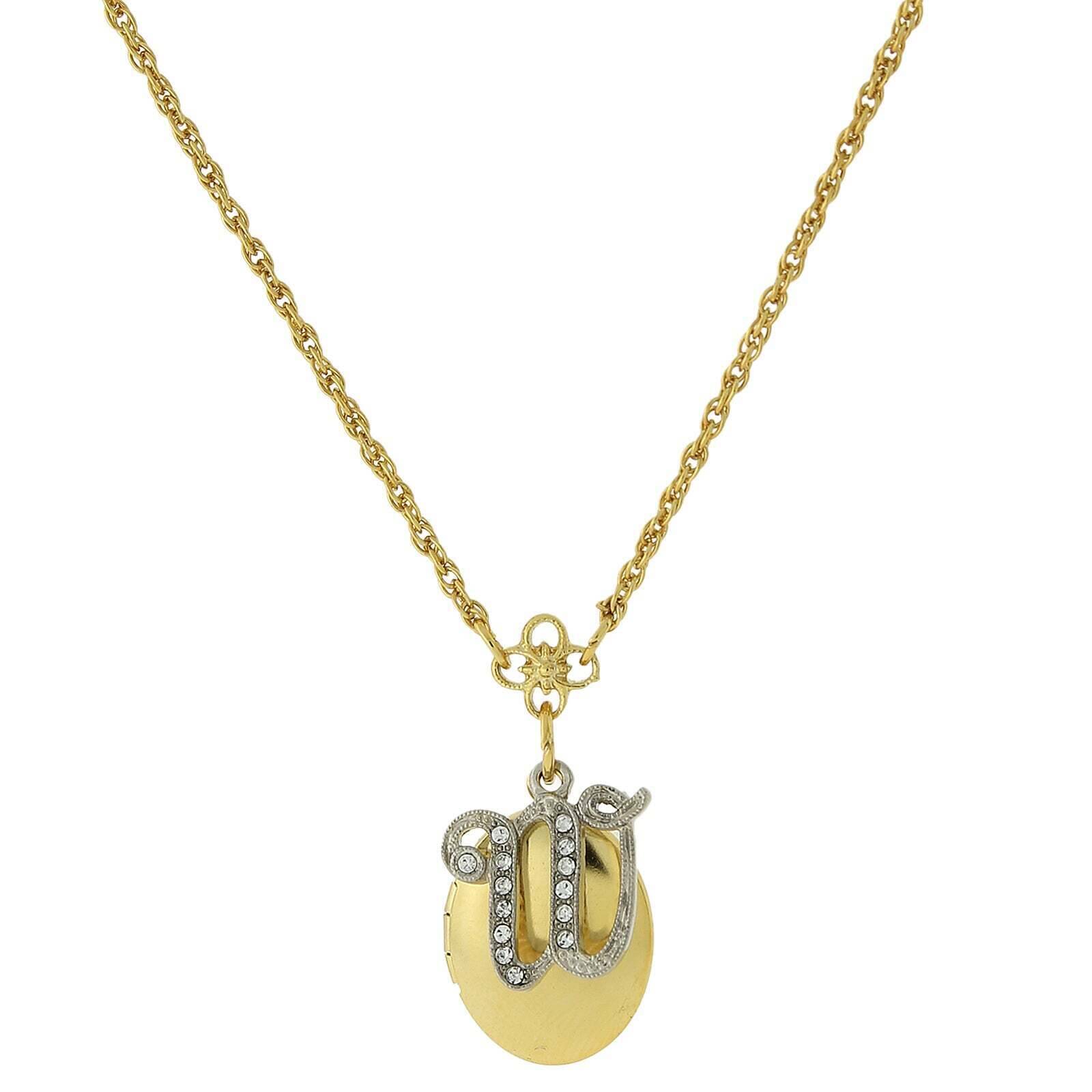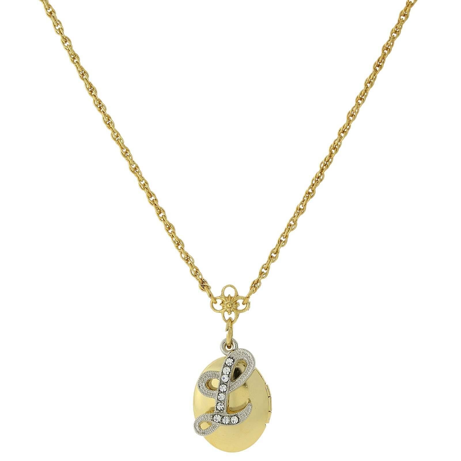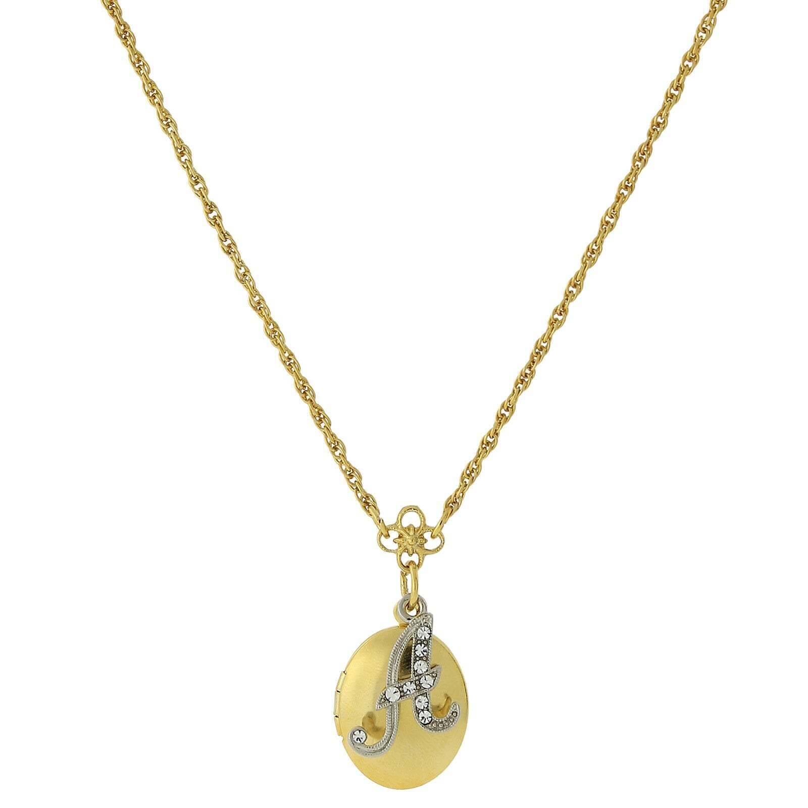 1928 Jewelry Crystal Initial Gold Locket Necklace 16"