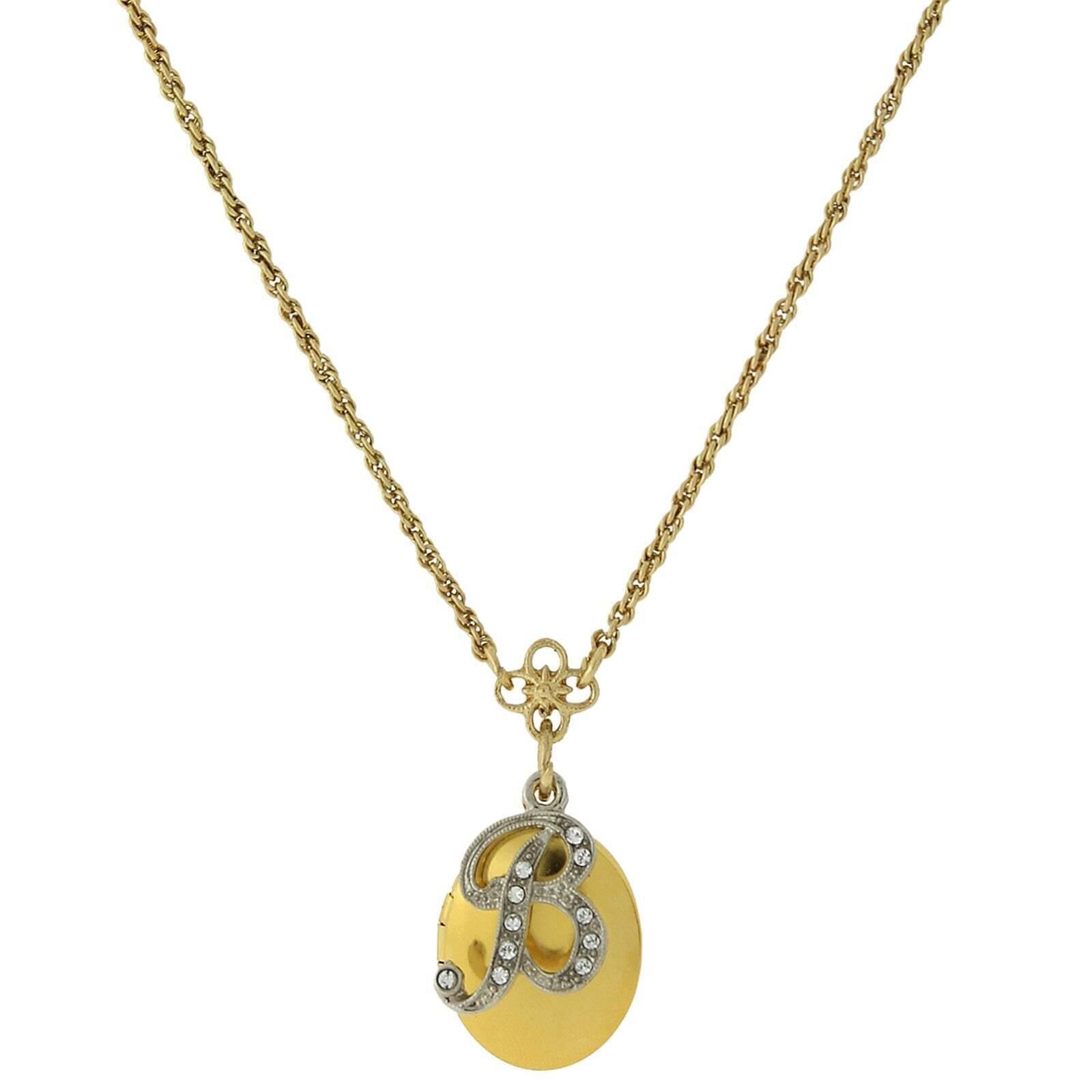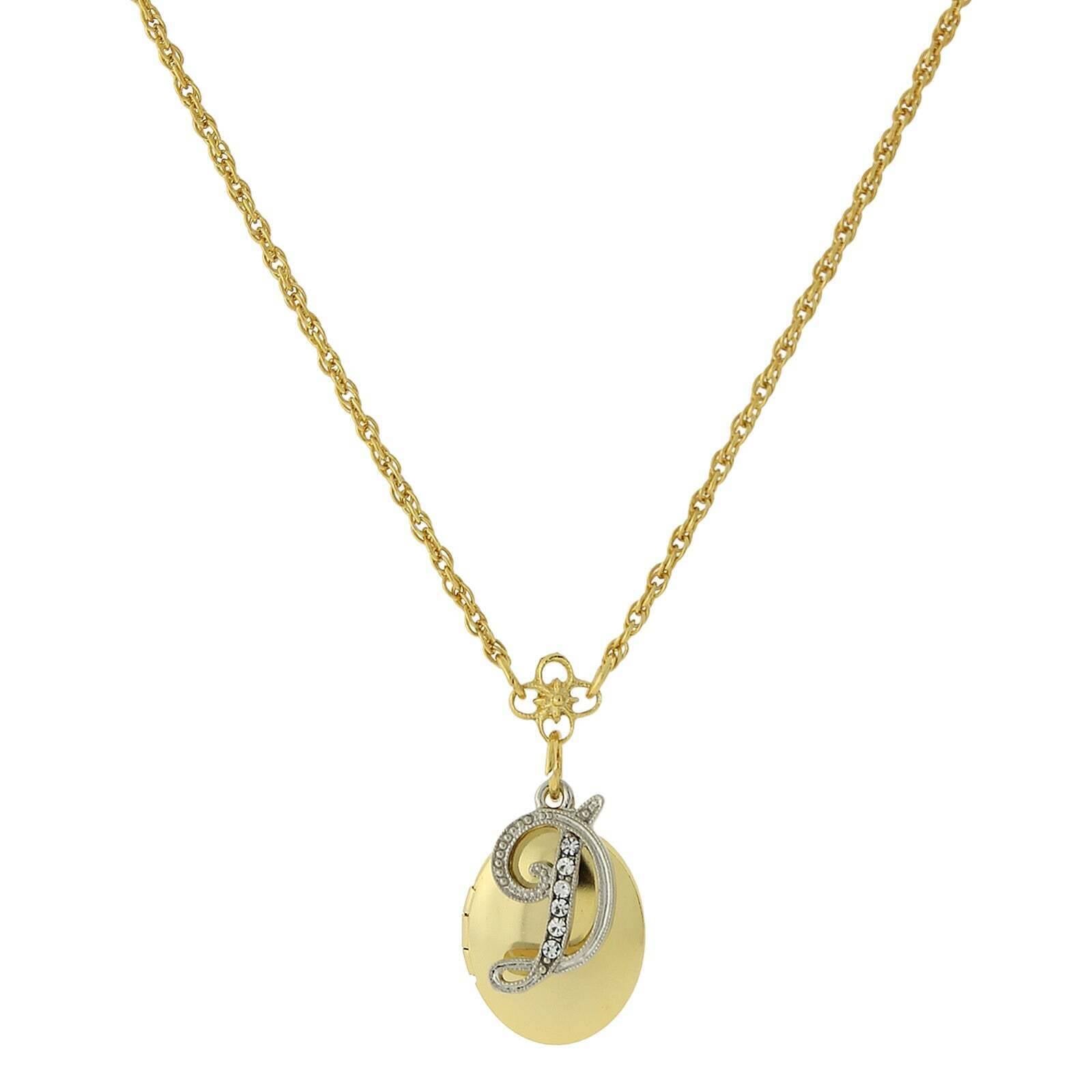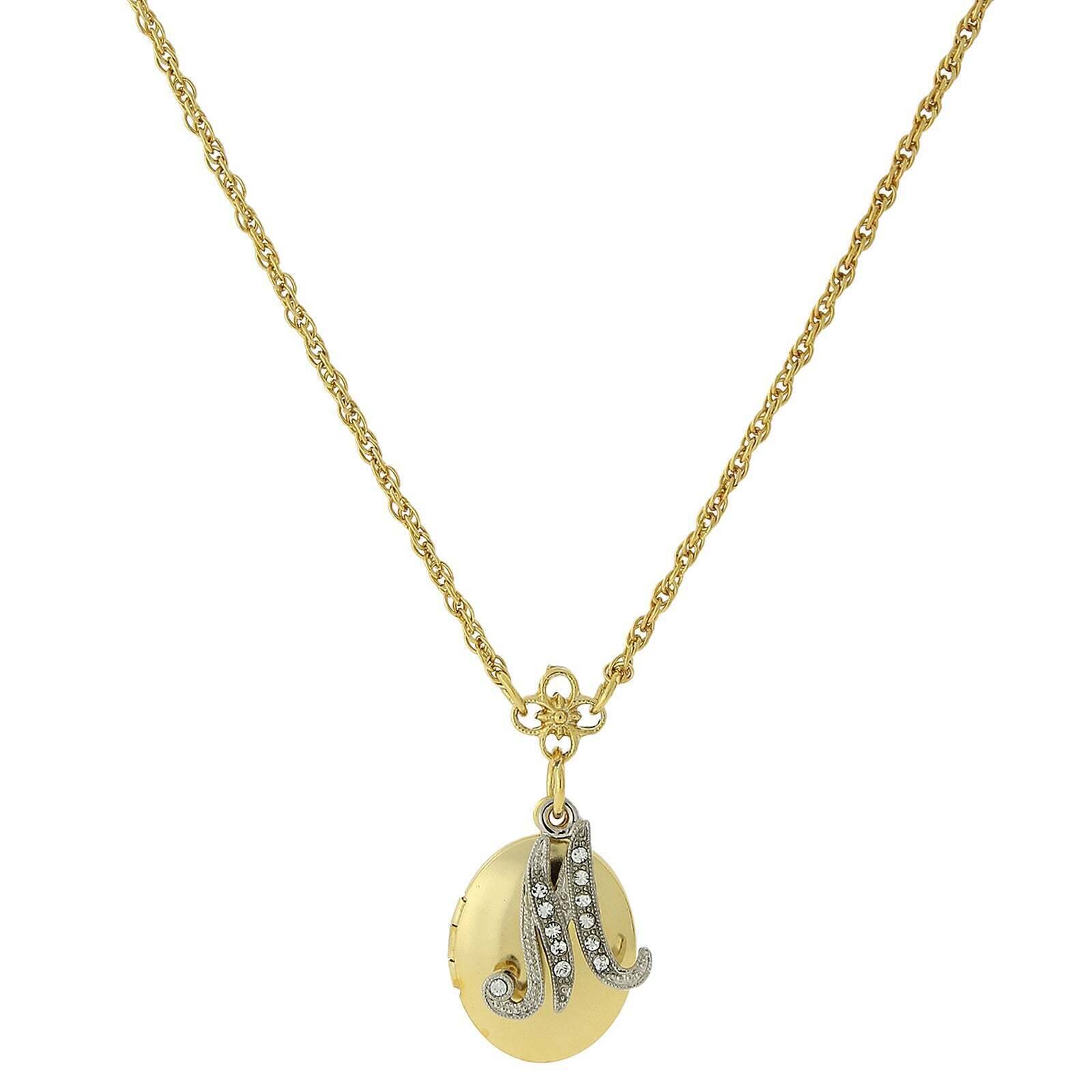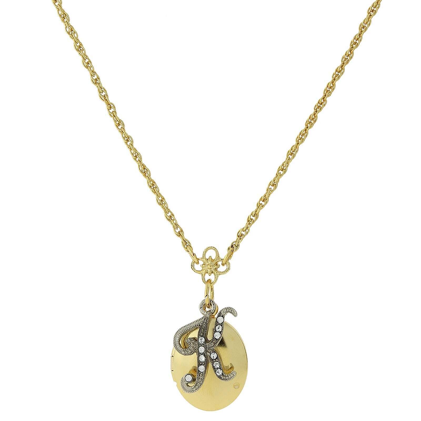 1928 Jewelry Crystal Initial Gold Locket Necklace 16"