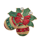 This festive brooch captures the joy of the season with its gold-tone finish and vibrant green and red enamel accents. Shaped like two charming Christmas ornaments, it€š¬š¬š¬š¬€š¬š¬š¬ž¢s adorned with three round brilliant crystals that add a radiant sparkle. A perfect touch of holiday cheer for coats, scarves, or sweaters.