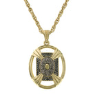 Utter a bold statement with this dramatic medallion necklace. A gold-toned oval pendant is embellished with a flower imprinted design in an antiqued silver tone. Small grey crystals add a dimension of sparkle to the piece to complete the look.