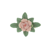 1928 Jewelry Pink Porcelain Rose And Green Leaf Bar Pin