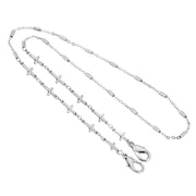 This classic style silver tone handmade 22-inch face mask chain holder with crosses hangs freely when not in use & effortlessly keeps your mask fit the way you like it. This chain necklace prevents having to put your mask in your pocket or on contaminated surfaces, lowering the risk of contagion Made with easy to use lobster clasp.