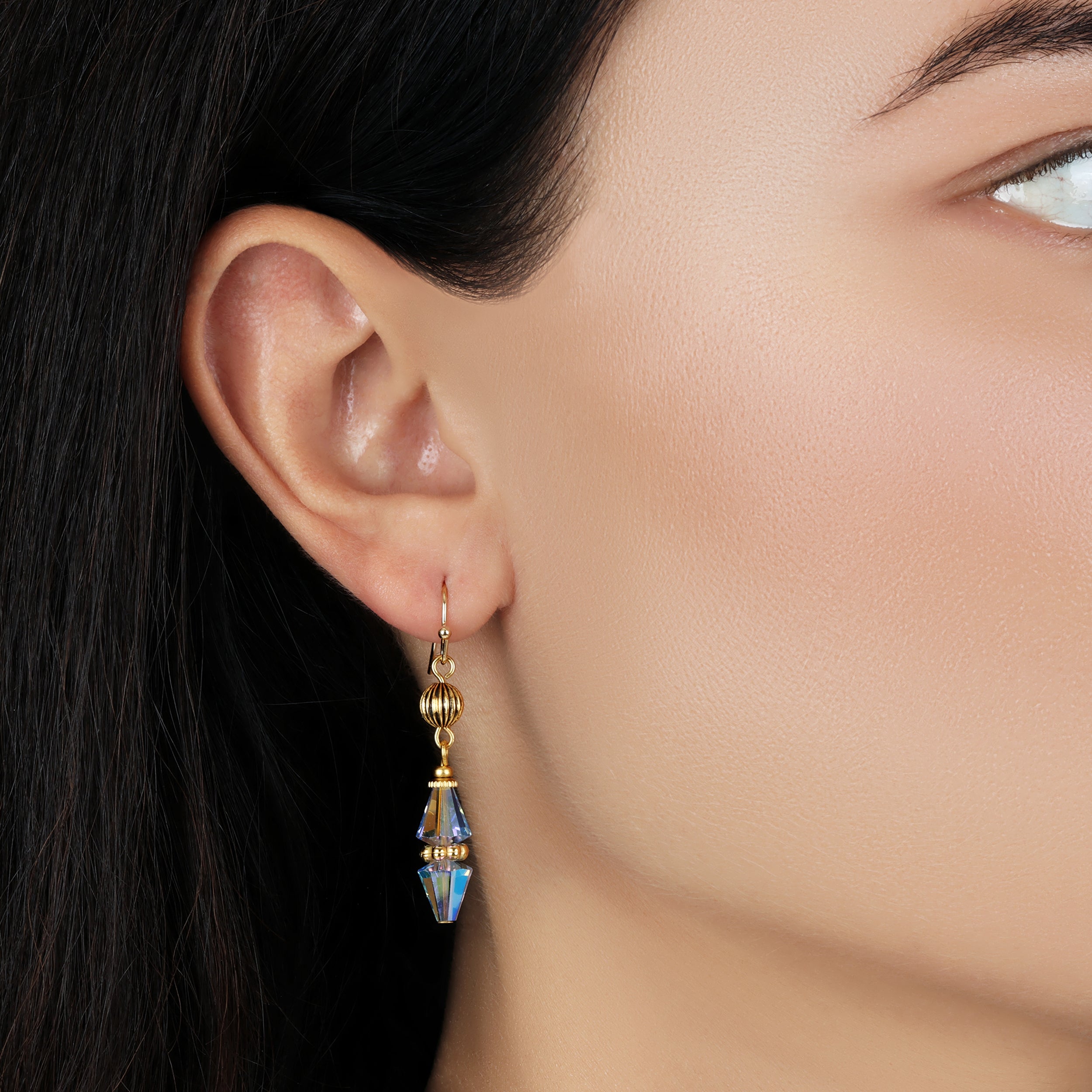 1928 Jewelry Glass Teardrop Crystal Beaded Dangling Earrings