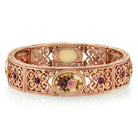 This Manor House, Victorian inspired stretch bracelet, features rose gold tone filigree, amethyst purple crystals and vintage floral motif stones.