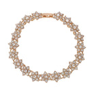 An elegant bracelet perfect daytime and evening attire! This linking clasp bracelet features round white Crystal Opal Stone stones in a flower shape with round clear crystals at the center. The bracelet has also been dipped in 14k gold for an extra touch of lux.