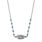 This simple and classic dog and paw necklace, perfect for most any outfit! Featuring a pewter pendant with dog paws and bones & a cable chain accented with Montana blue European lantern crystals. This necklace also comes with a 3-inch extender with lobster clasps.