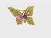This sweet butterfly brooch is made with gold tone filigree and is set with light rose crystals set into each of the wings. Amazingly detailed the piece is given a genuine porcelain rose at center to create a complete mood of romance. Pin it on to your lapel, coat, bag, scarf, jacket, or sweater to create your own personalized conversation piece. Pins and brooches make a unique gift for her. A classic 1928 design!