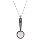 1928 Jewelry Blue Crystal & Enamel Octagon Magnifying Glass Pendant Necklace 30" - Magnification Power: 1-2X
