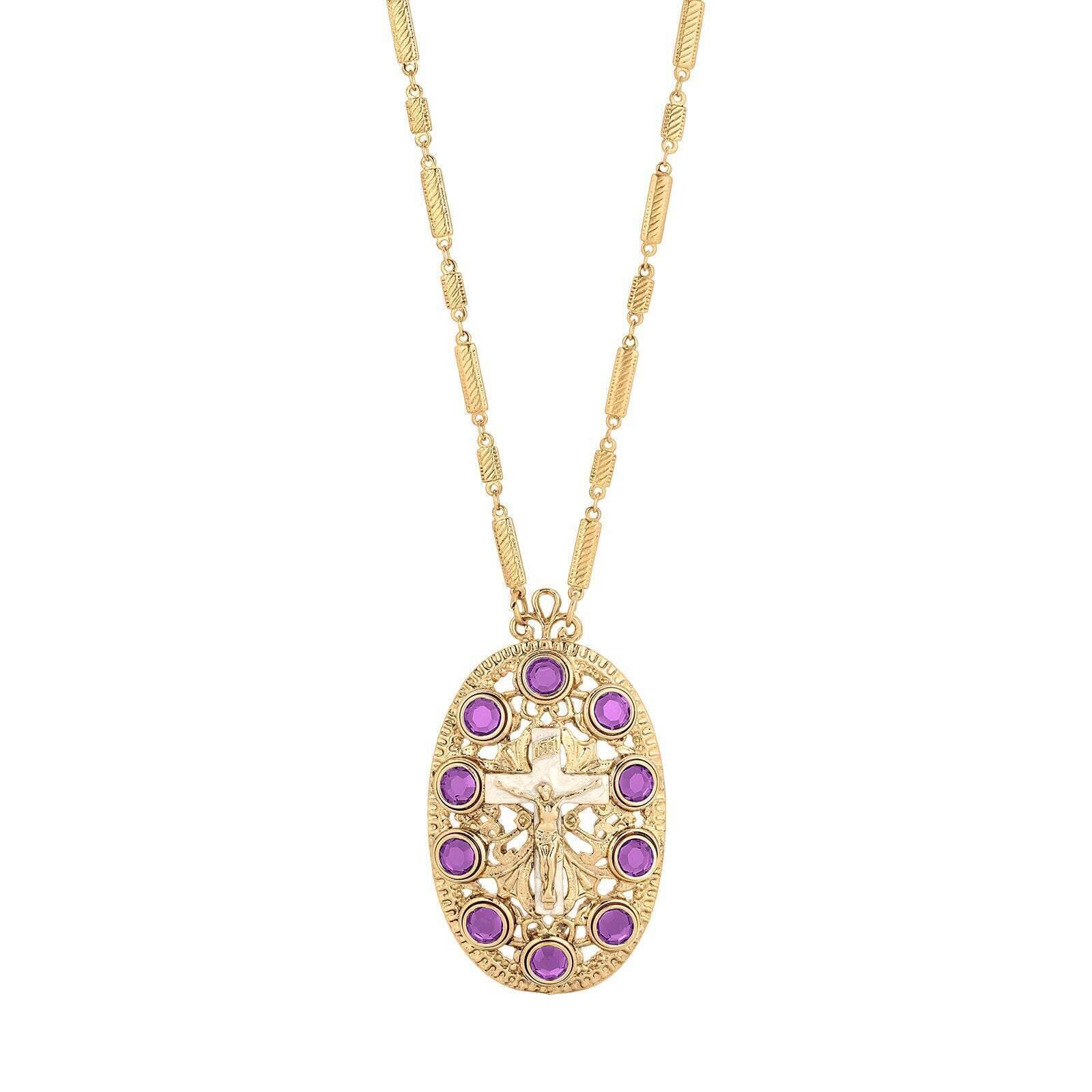 Symbols Of Faith INRI Crucifix Channel Crystal Oval Pendant Necklace 26"