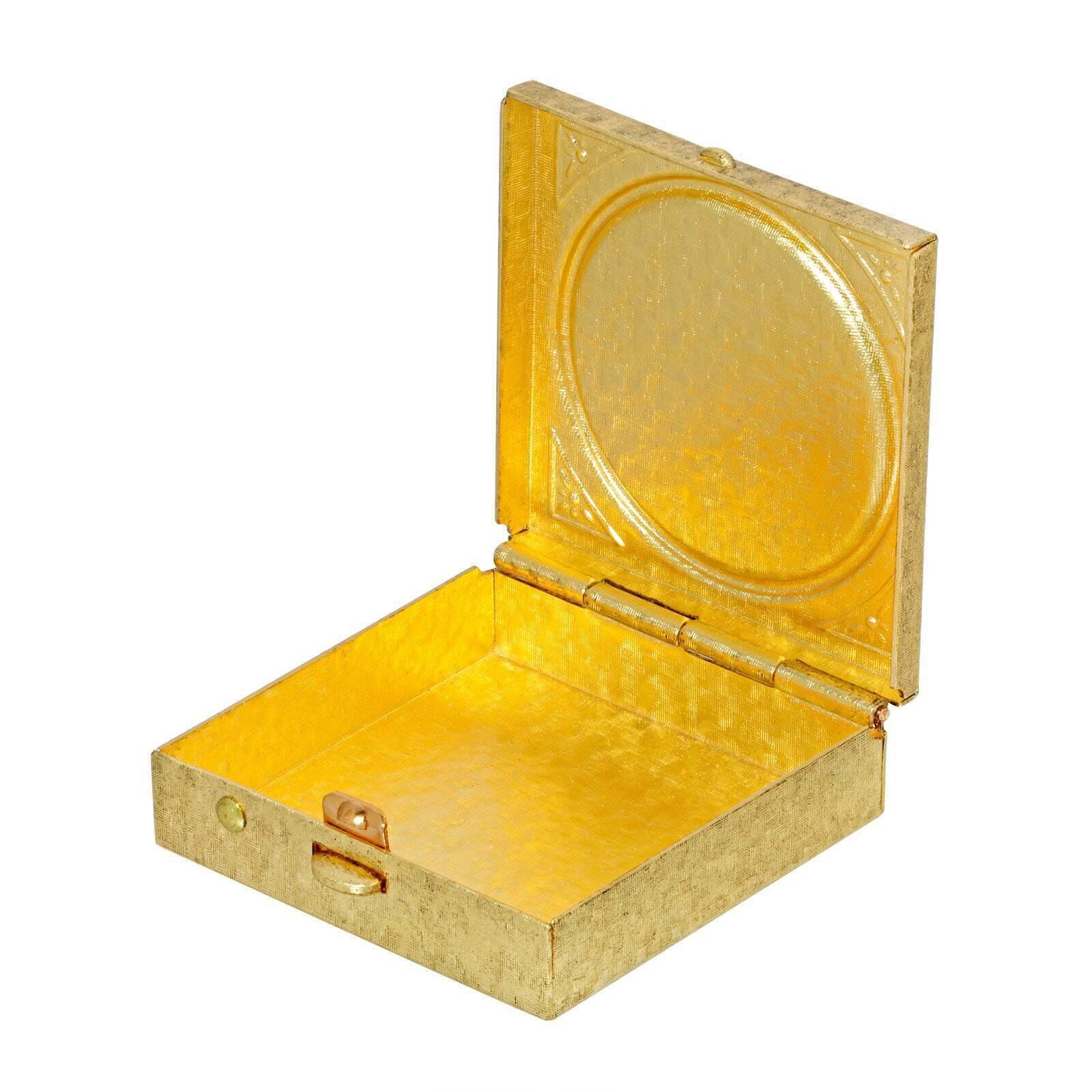 Square, 14K gold dipped and designed with a simplistic frame designed, this special and unique pill box is a great way to keep your medications with you while you are on the go.