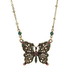 Regency Antiqued Butterfly Multi Color Crystals Pendant Necklace 16" + 3" Extension