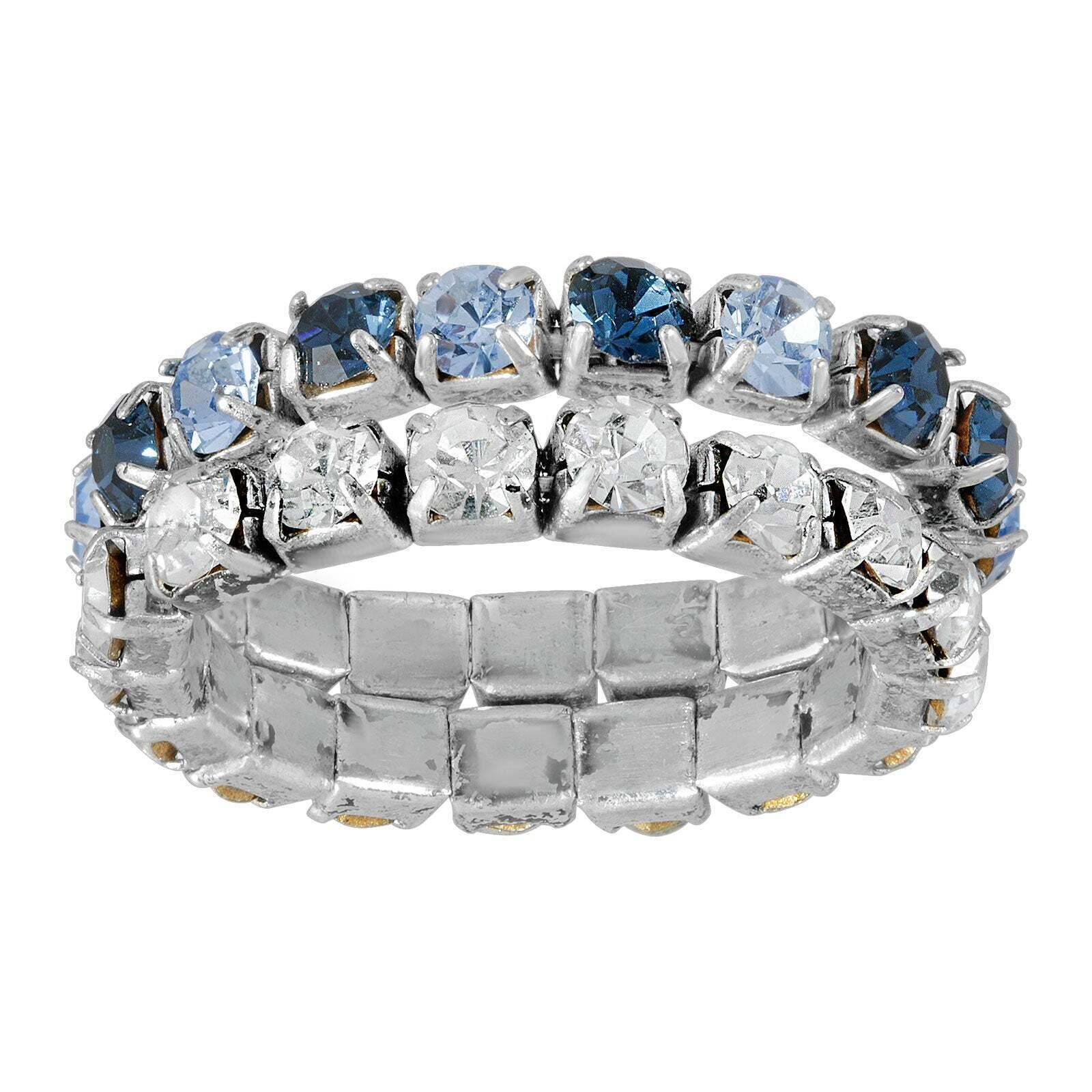 1928 Jewelry Double Stacked Brilliant Crystal Stretch Ring Set