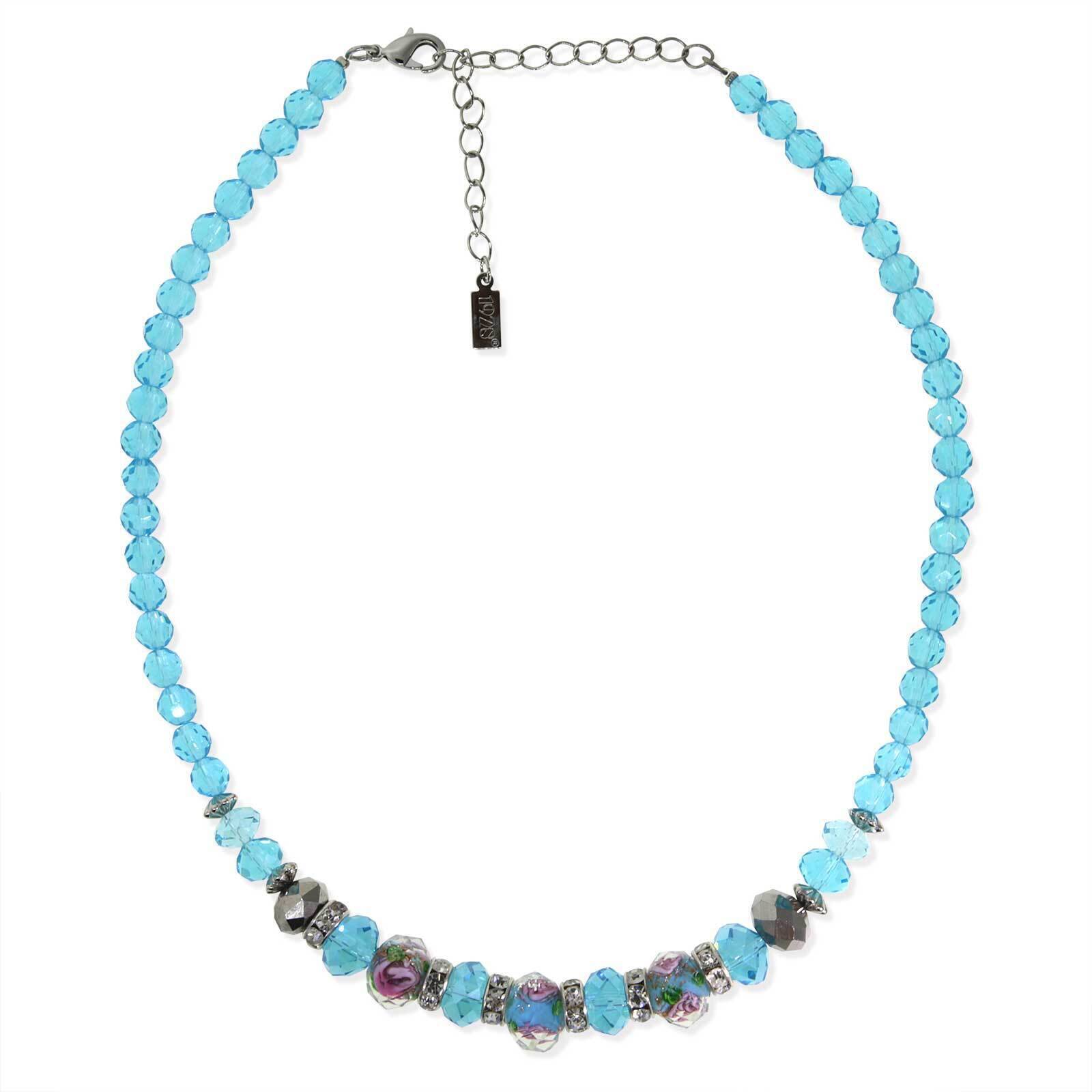 Pretty in Spring! A stunning piece for the sophisticated woman. This delicate necklace features a row of faceted beads with pink floral design accents in silver toned crystal bands. Also features an adjustable chain with a small lobster clasp closure.