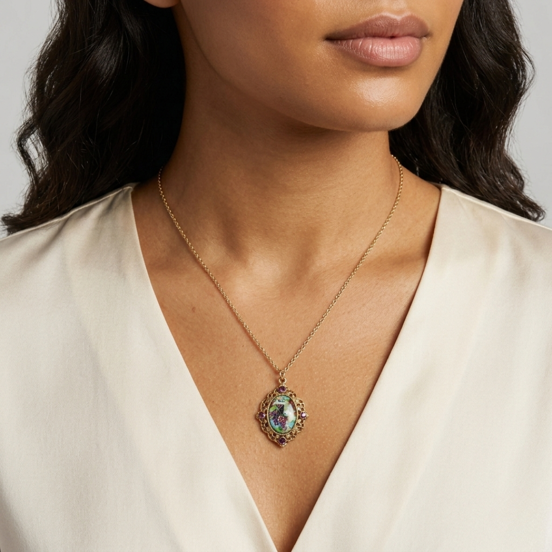 The sweet smell in the air, the bloom on the grape, even the pleasure we feel while sipping wine, all conjure up wonderful memories we want to make everlasting. We've taken the next step into creating an alluring vintage inspired collection of grape motif jewelry, all of which can be part of your collectibles. Whether worn alone or layered, the antique inspired winery jewelry assortment will become part of your go to wearables. A nod to nature, these beautiful pieces are crafted in the United States, not far from the American home of wine country in California.