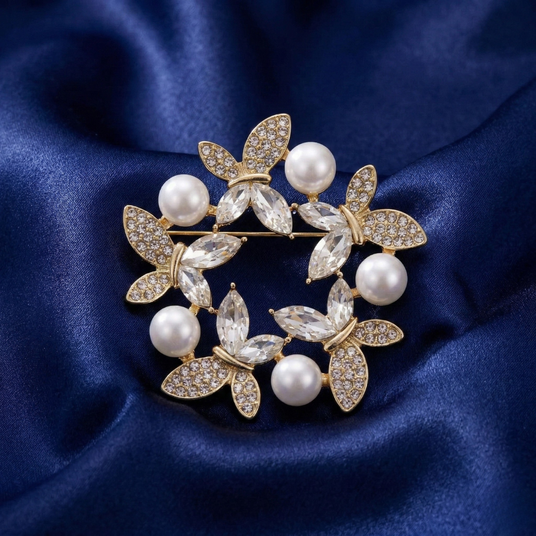 Enchanted Crystal & Faux Pearl Butterfly Symphony Pin