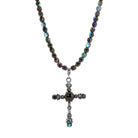 Black Iris Scarab Faceted Glass Fire Polished Beaded Strand Crystals Cross Pendant Necklace 16.5" + 3" Extension