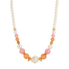 Peppermint Pink & Toffee Beaded Faux Pearl Strand Necklace 15" + 3" Extension