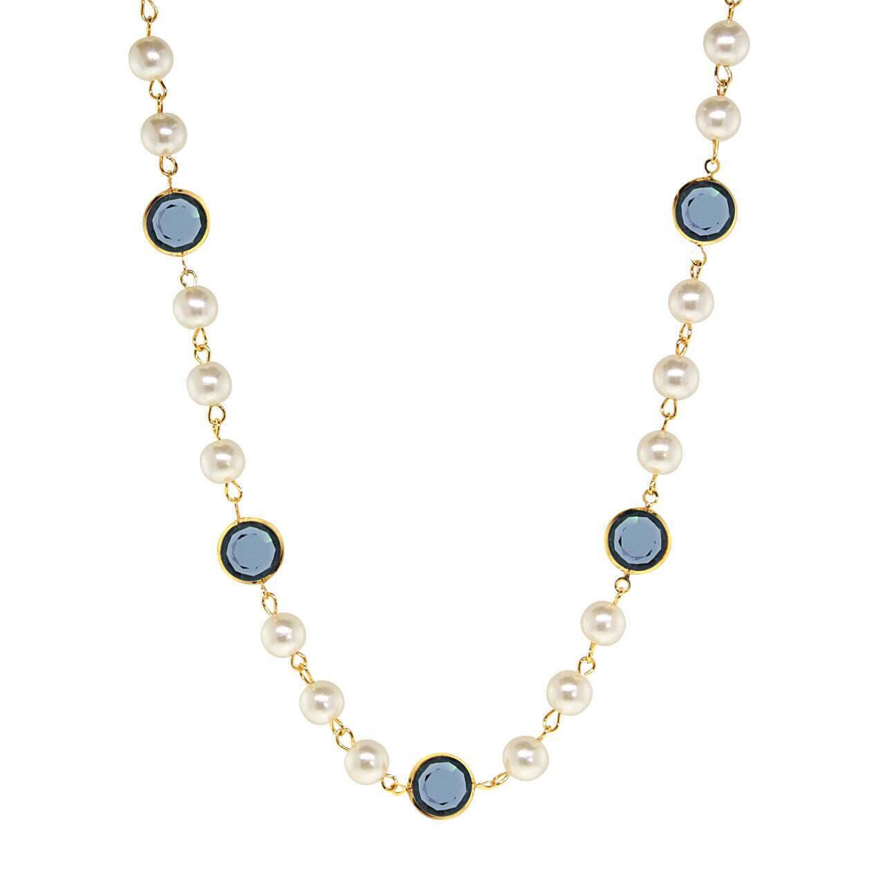 1928 Jewelry Channel Austrian Crystal & 8mm Faux Pearl Necklace 16" + 3" Extender