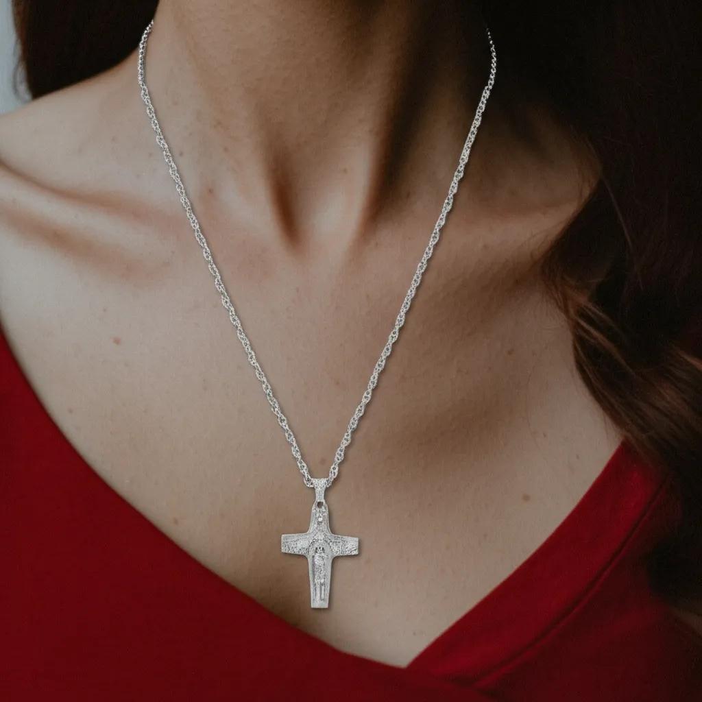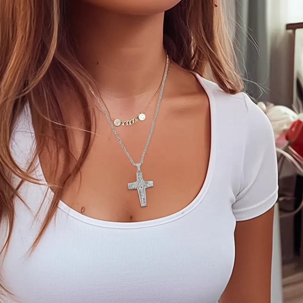 1928 Spiritual Crystal Cross Pendant Necklace 30"