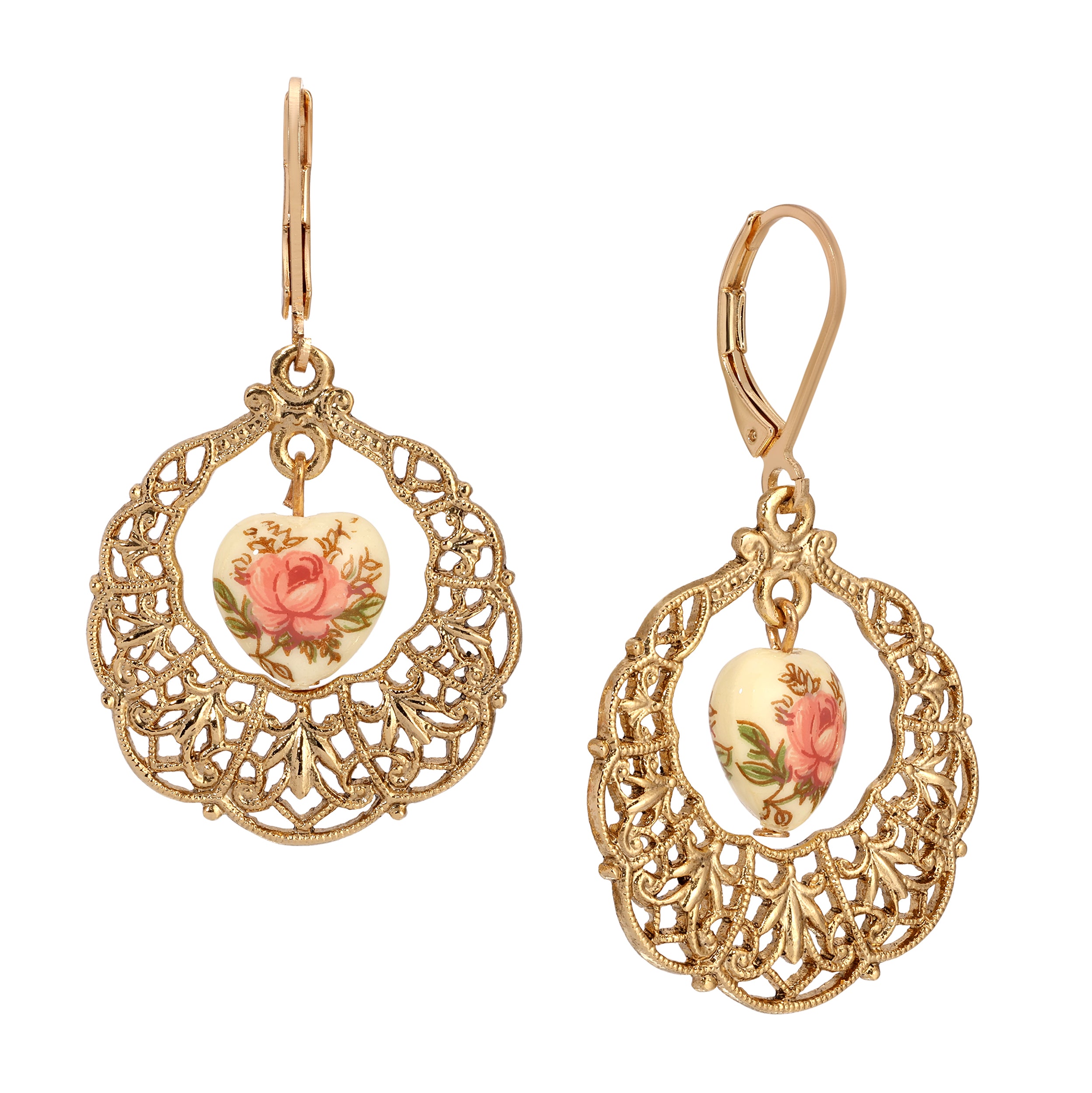 1928 Jewelry Round Crystal Gold Initial Heart Stud Earrings