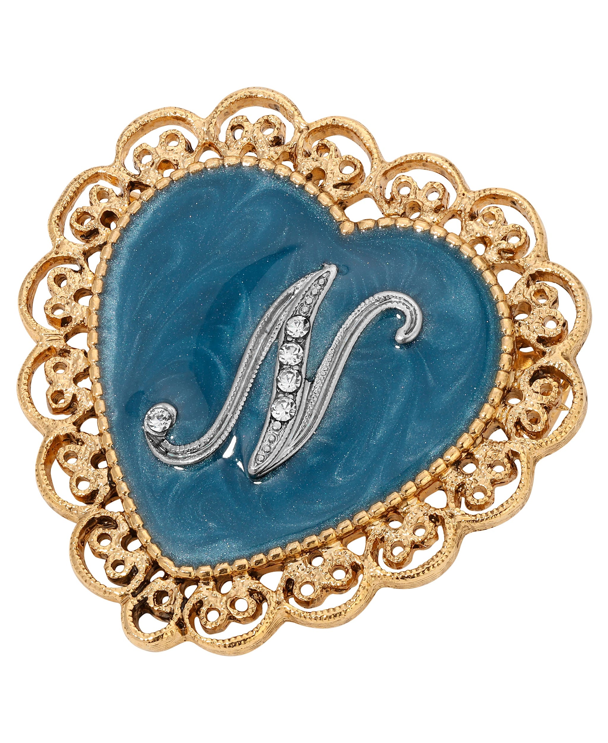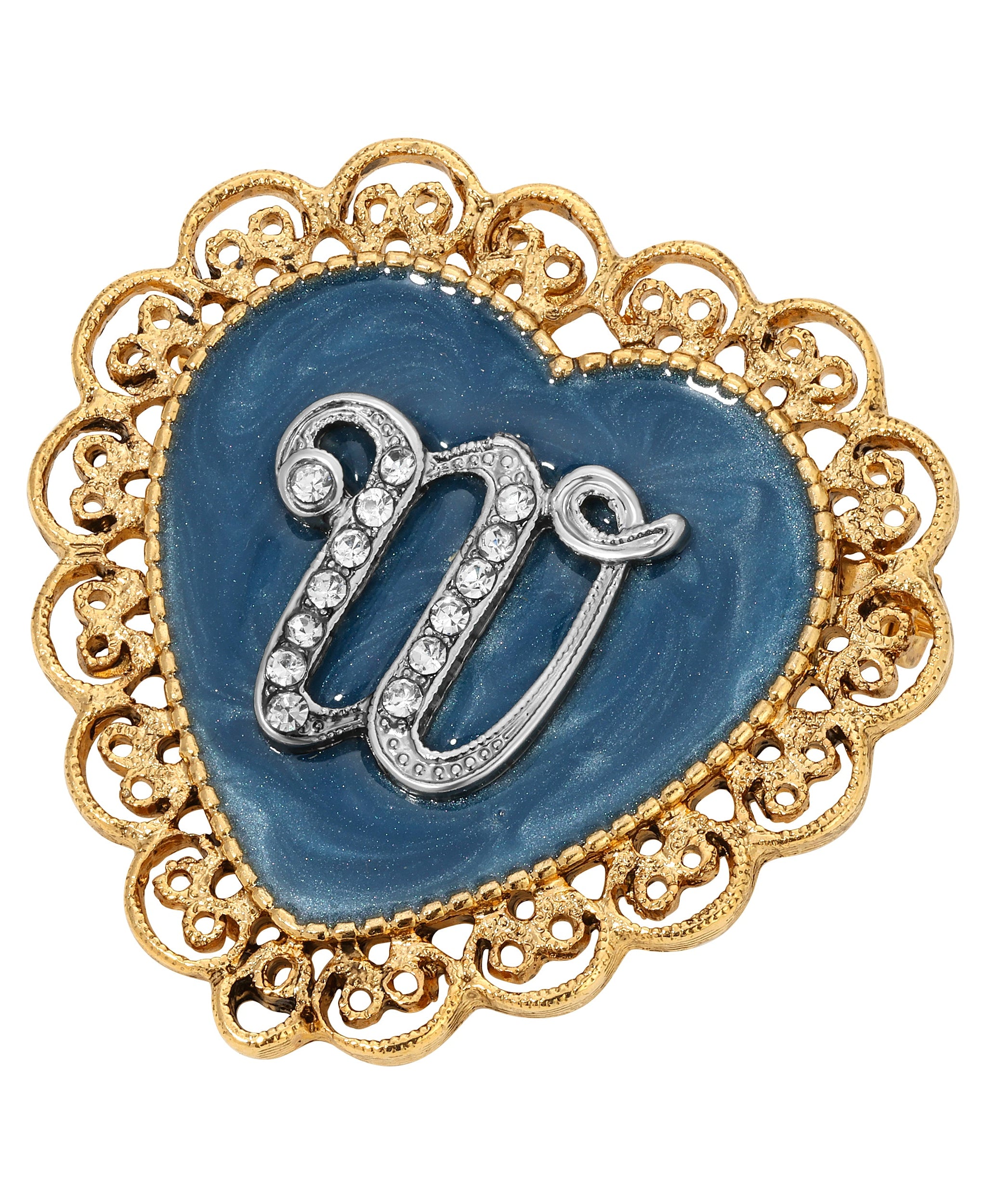 1928 Jewelry Gold Heart Initial Crystal Charm Bangle Bracelet, 2.5"