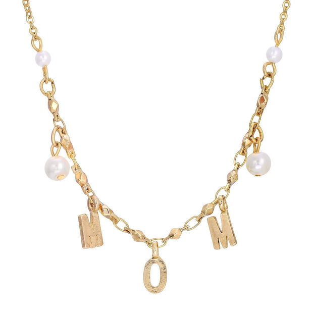 Beautiful 16" 14k gold dipped necklace spells out MOM. A perfect gift for mom! Decorated with 5mm faux pearl beads this vintage inspired piece is something she will treasure!