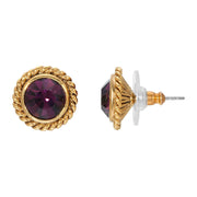 These darling earrings are perfect for everyday, and special occasions too! Featuring a circular Czech Amethyst crystal stone wrapped in 14K gold dipped "rope" design with a post backing for secure fit.