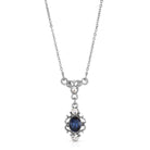 1928 Bridal Dark Blue Oval Crystal Filigree Pendant Necklace 16" + 3" Extender