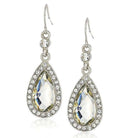 Add a sparkle to your look with these elegant light topaz faceted teardrop stone drop earrings surrounded by a halo of shimmering glass crystals set in silver tone metal.