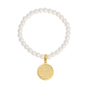 1928 Jewelry 6mm Faux Pearl Multilingual Peace Medallion Stretch Bracelet