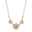 A vintage inspired masterpiece, this starburst necklace features clear brilliant crystals and dangles from white round faux pearls. Available in gold tone and silver tone colors.