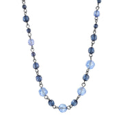 1928 Jewelry Black Chain Multi Blue Bead Necklace 15" + 3" Extender