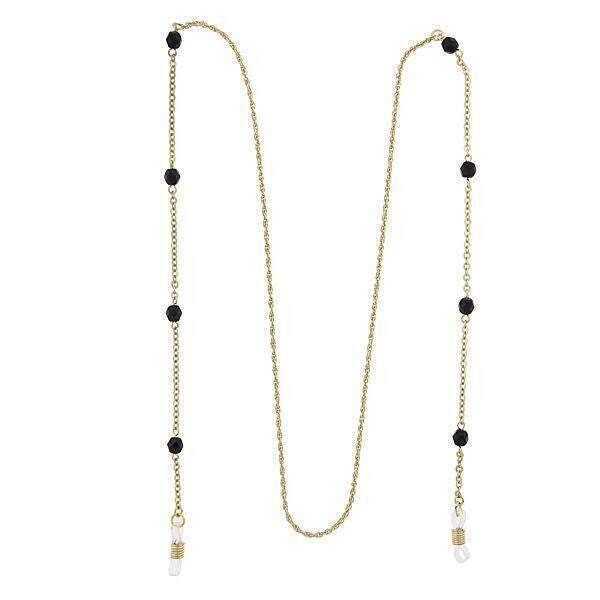 Featuring a gold-tone chain decorated with jet black beads. A fabulous way to keep your glasses conveniently close at all times.