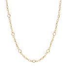 This elegant gold tone linking chain necklace seamlessly intertwines lustrous faux pearls and sparkling round channel crystals, creating a captivating fusion of sophistication and glamour. The round pearls add a touch of classic charm, while the channel-set crystals provide a modern and dazzling allure. A statement piece that effortlessly combines timeless elements with contemporary flair.