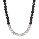 This stunning jet black beaded necklace exudes sophistication, boasting faceted black diamond crystals complemented by rondelle clear crystals for added brilliance. The contrast between the deep black and sparkling clear creates a mesmerizing allure, perfect for adding a touch of elegance to any ensemble.