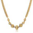 A lux vintage inspired design, this necklace features corrugated beads in a variety of sizes with Rondell crystal beads in between. The twisted linking chain comes with a 3-inch extender and lobster clasp closure.