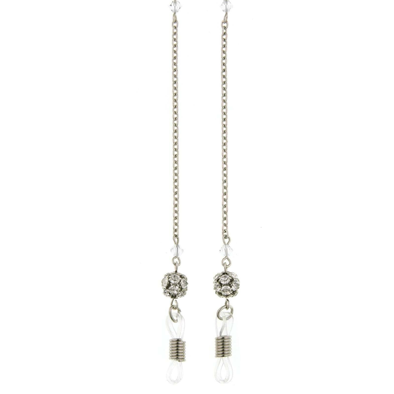 A fabulous way to keep your glasses conveniently close at all times. Stunning silver tone eyeglasses or sunglasses holder necklace hangs beautifully is featuring a dazzling crystal fireball accent at the end. Stop stretching your shirts by hanging your glasses on the collar. Hang your eyeglasses on this on-trend silver tone chain. Chain can also hang alone. This makes a perfect practical and fashionable gift.