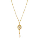 1928 Jewelry Encased Faux Pearls & Teardrop Y Necklace 28"