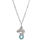 A beautiful necklace that captures the timeless elegance and spirit of horseback riding. At the heart of this enchanting necklace is a meticulously crafted horsehead pendant, polished to a brilliant shine. The intricate detailing brings the majestic presence of a horse to life, a true symbol of grace and strength. Just below the horsehead, a delicately designed horseshoe adds an extra touch of symbolism, representing luck and protection on every adventure, with carefully placed turquoise European crystals, reminiscent of the tranquil blue hues of open skies and vast landscapes that equestrians often traverse.