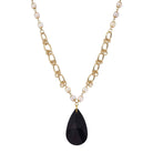1928 Jewelry Faux Pearl Link Chain Briolette Crystal Pendant Necklace 28"