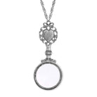 1928 Jewelry Filigree Heart And Round Magnifying Glass Pendant Necklace 28" - Magnification Power: 2X