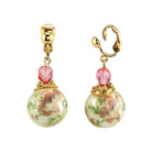 These earrings are sweet, delicate and completely romantic. A faux porcelain bead decorated with a vintage-inspired floral motif is held by gold-toned clip hooks. Pink crystals above the beads for a touch of sparkle and color.